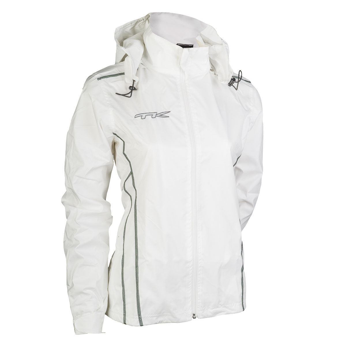 Weatherproof "Natal" training jacket for women and girls with attractive, contrasting overlock seams and zip fastening. Two side slit pockets with zips offer enough space to safely store keys, wallet, mobile phone, etc. The cuffs are adjustable and the hood can be removed. This practical and attractive training jacket will keep you reliably dry during sports and leisure activities in any rain shower. The "Teresina" tracksuit bottoms are available to match.